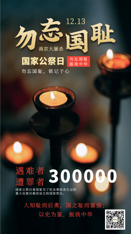 歷史不會因時代變遷而改變,事實也不會因巧舌抵賴而消失。2014年,國家以立法形式將12月13日設立為南京大屠殺死難者國家公祭日,以國之名,同祭民族之殤。那些誠勇犧牲與不屈抗爭,在血與火中淬煉,生生不息,激勵著一代又一代人,沖破黑暗,向著光明前行。