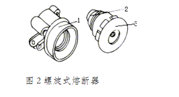 (2)螺旋式熔斷器 如圖2所示。熔體上的上端蓋有一熔斷指示器,一旦熔體熔斷,指示器馬上彈出,可透過瓷帽上的玻璃孔觀察到,它常用于機床電氣控制設(shè)備中。螺旋式熔斷器。分斷電流較大,可用于電壓等級500V及其以下、電流等級200A以下的電路中,作短路保護。