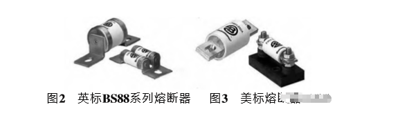 英式熔斷器主要用于英聯(lián)邦國家生產(chǎn)的設(shè)備。英標熔斷器殼體采用陶瓷材質(zhì),產(chǎn)品具有體積小、性價比高等特點,特別受到240V以下的UPS廠商青睞。英標BS88系列熔斷器式樣如圖2所示。