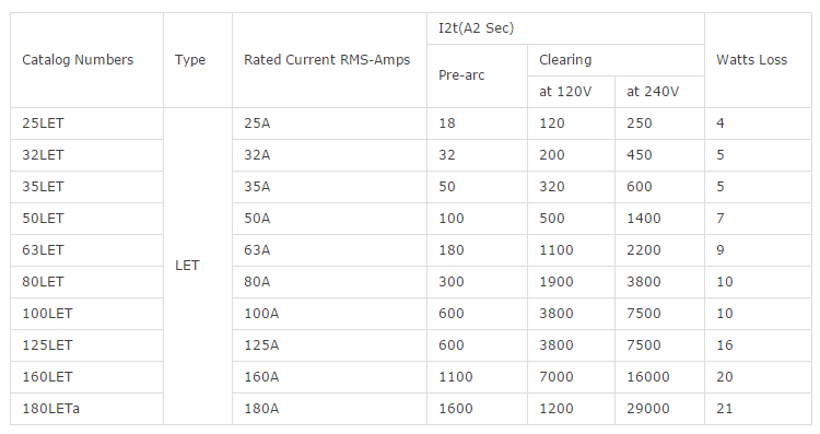 LET(240V) 25LET,32LET,35LET,50LET,63LET,80LET,100LET,125LET,160LET,180LET