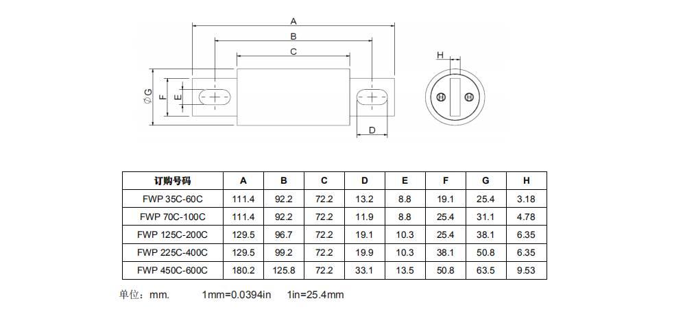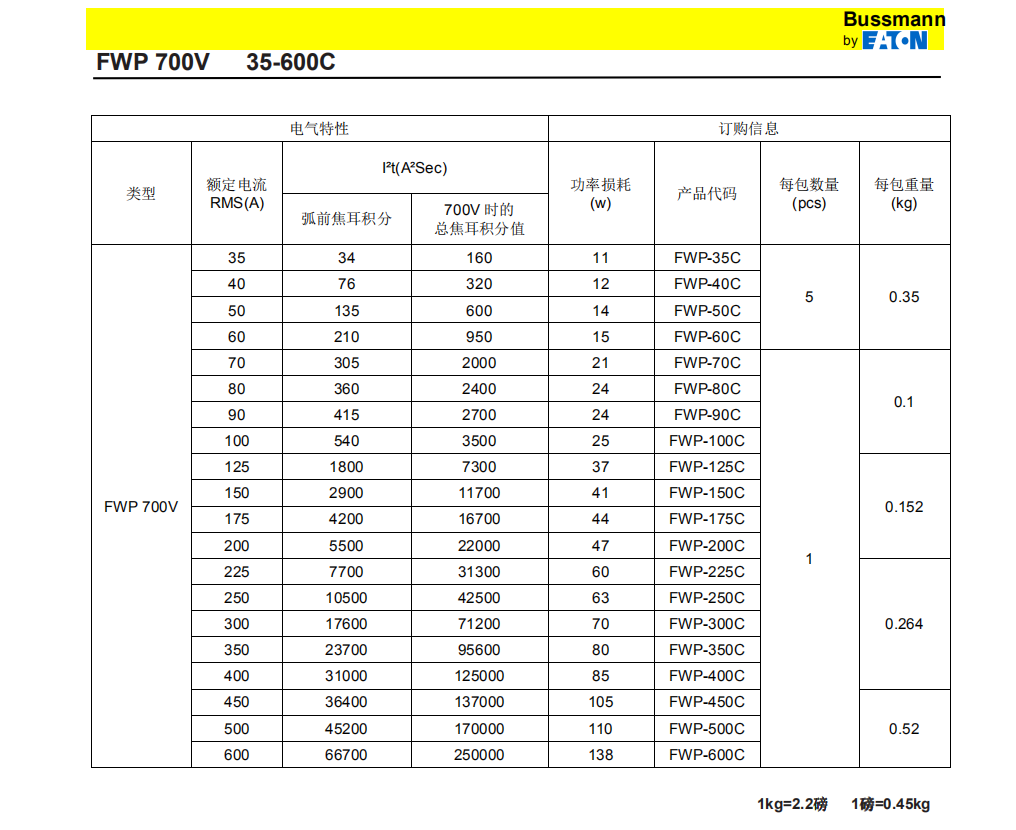 FWP(700V) FWP-xxC BUSSMANN保險絲 FWP-450C FWP-500C FWP-35C FWP-40C FWP-250C FWP-350C FWP-200C FWP-225C FWP-125C FWP-175C FWP-80C FWP-90C FWP-60C FWP-70C FWP-50C FWP-600C FWP-150C FWP-100C FWP-400C FWP-300C