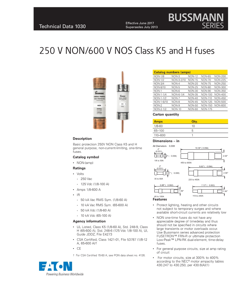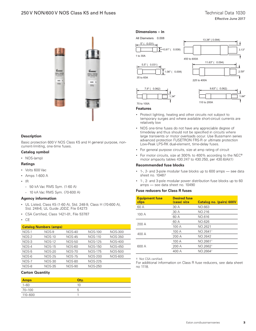Catalog Numbers - NOS ONE-TIME (600Vac)