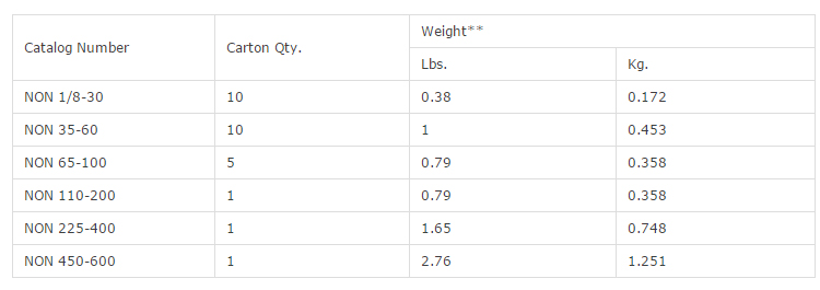 Carton Quantity and Weight - NOS ONE-TIME (600Vac)