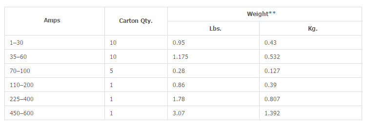 Carton Quantity and Weight&ndash;JKS LIMITRON (600Vac)*