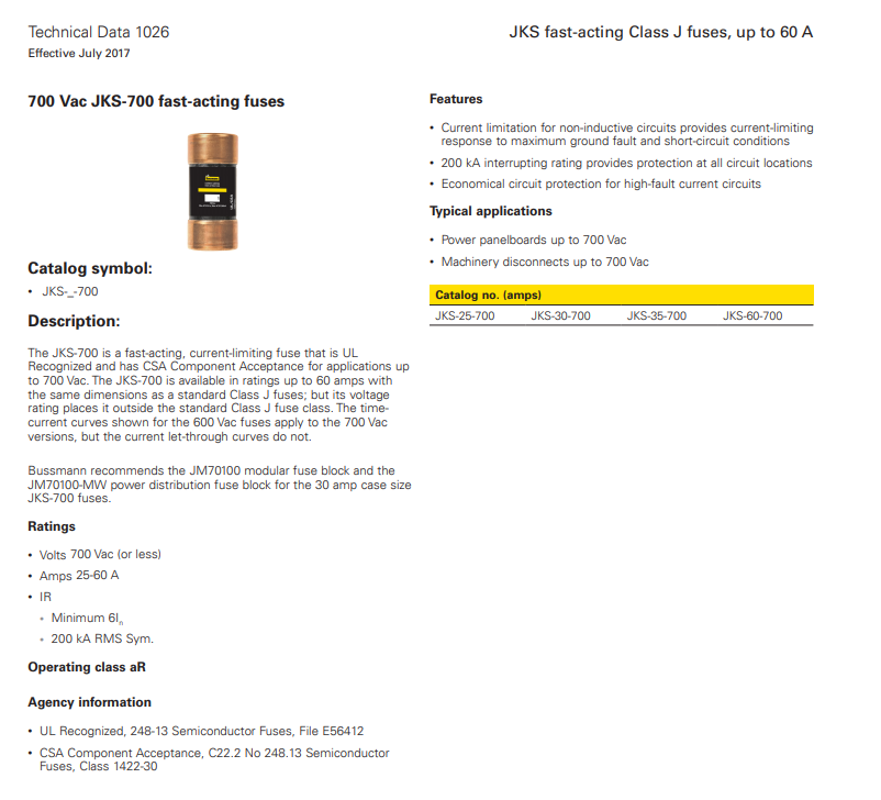 *15-30A rated 200VDC, 31-60A rated 175VDC and 10 KAIC.