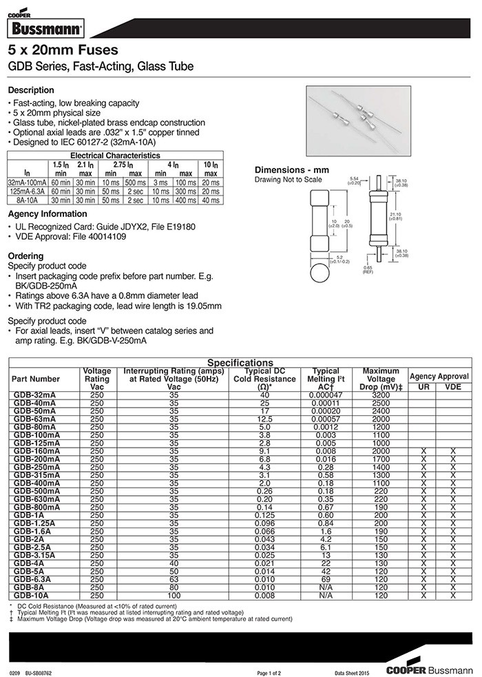 bussmann GDB玻璃管保險絲 快斷 250V保險絲 GDB-10A GDB-1.25A GDB-1.6A GDB-100mA GDB-3.15A GDB-200mA GDB-250mA GDB-2.5A GDB-125mA GDB-160mA GDB-2A GDB-500mA GDB-400mA GDB-40mA GDB-315mA GDB-1A GDB-50mA GDB-5A GDB-4A GDB-8A GDB-63mA GDB-800mA GDB-6.3A GDB-32mA GDB-80mA GDB-630mA