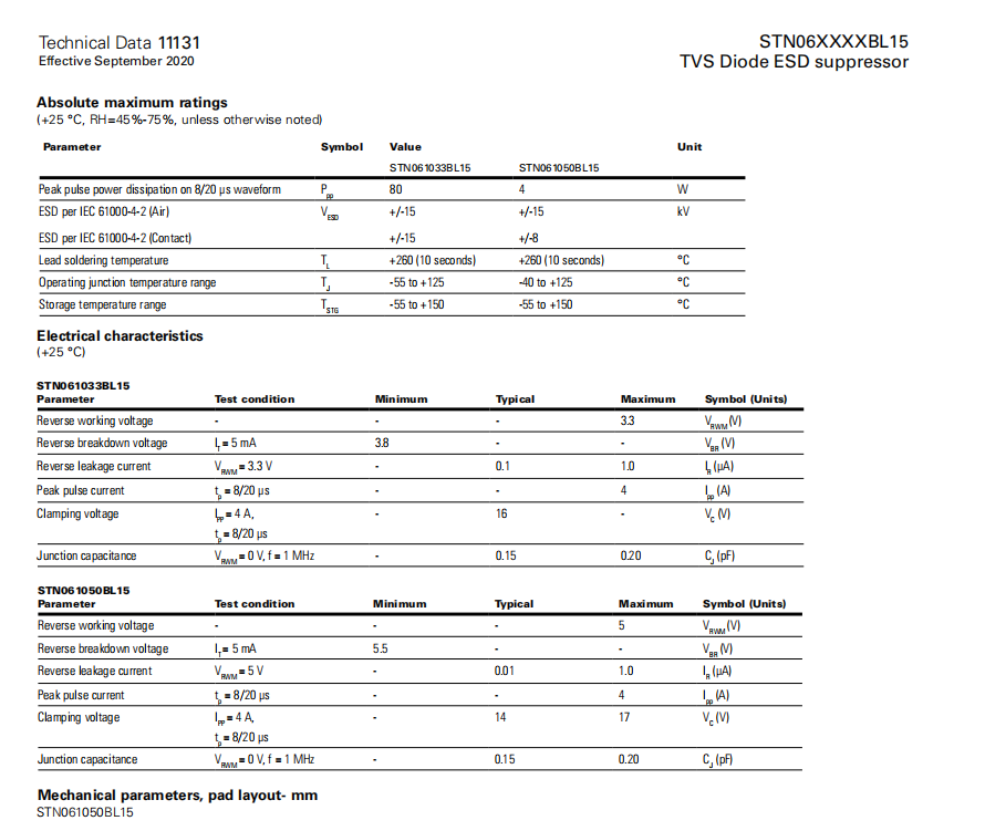 STN06XXXXBL15 TVS二極管ESD抑制器